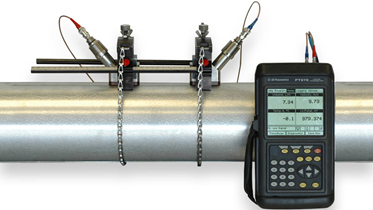 The Panametrics PT878 clamp-on ultrasonic flow meter is universally regarded as the best portable ultrasonic flow meter and can be used to measure a wide range of clean and dirty liquids, even with some gas bubbles or solids. It can be used on pipes from 0.5 inch to 300 inch (12.7mm to 7.6m) on all metals and most plastics without the need to cut into the pipe.